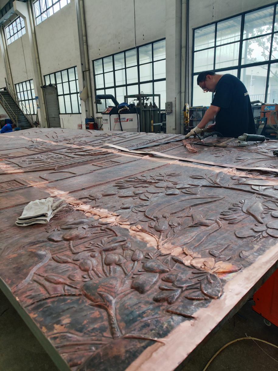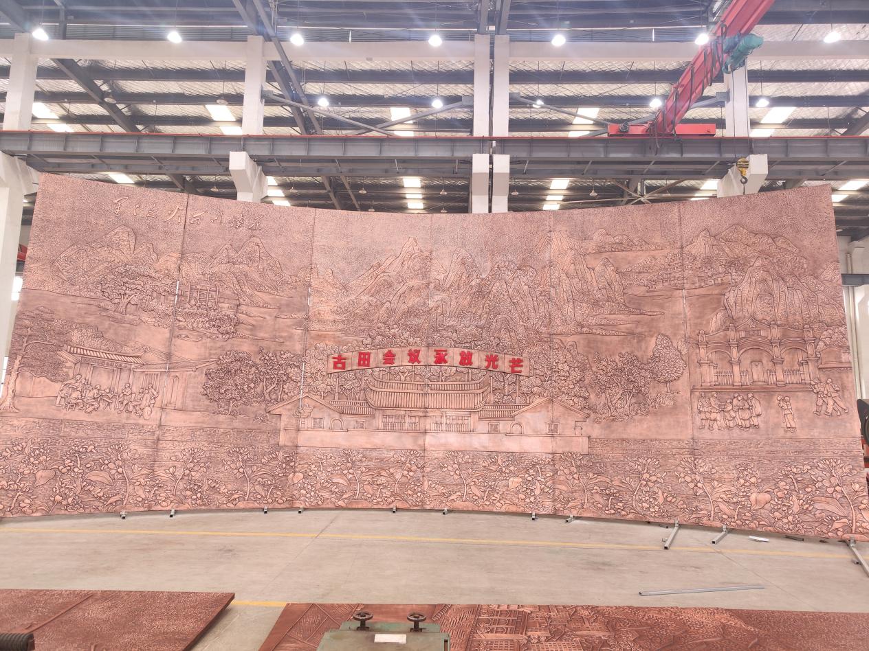 12月26日,龍龍高鐵龍巖至武平段正式開通運(yùn)營,由銅陵銅官府文化創(chuàng)意股份公司設(shè)計(jì)并制作的大型銅浮雕在上杭高鐵站正式交付使用。該項(xiàng)目在地方政府支持下,公司全體員工克服了雙曲面、體積大、畫面復(fù)雜、安裝難度高等困難,歷時(shí)3個(gè)月順利完工。